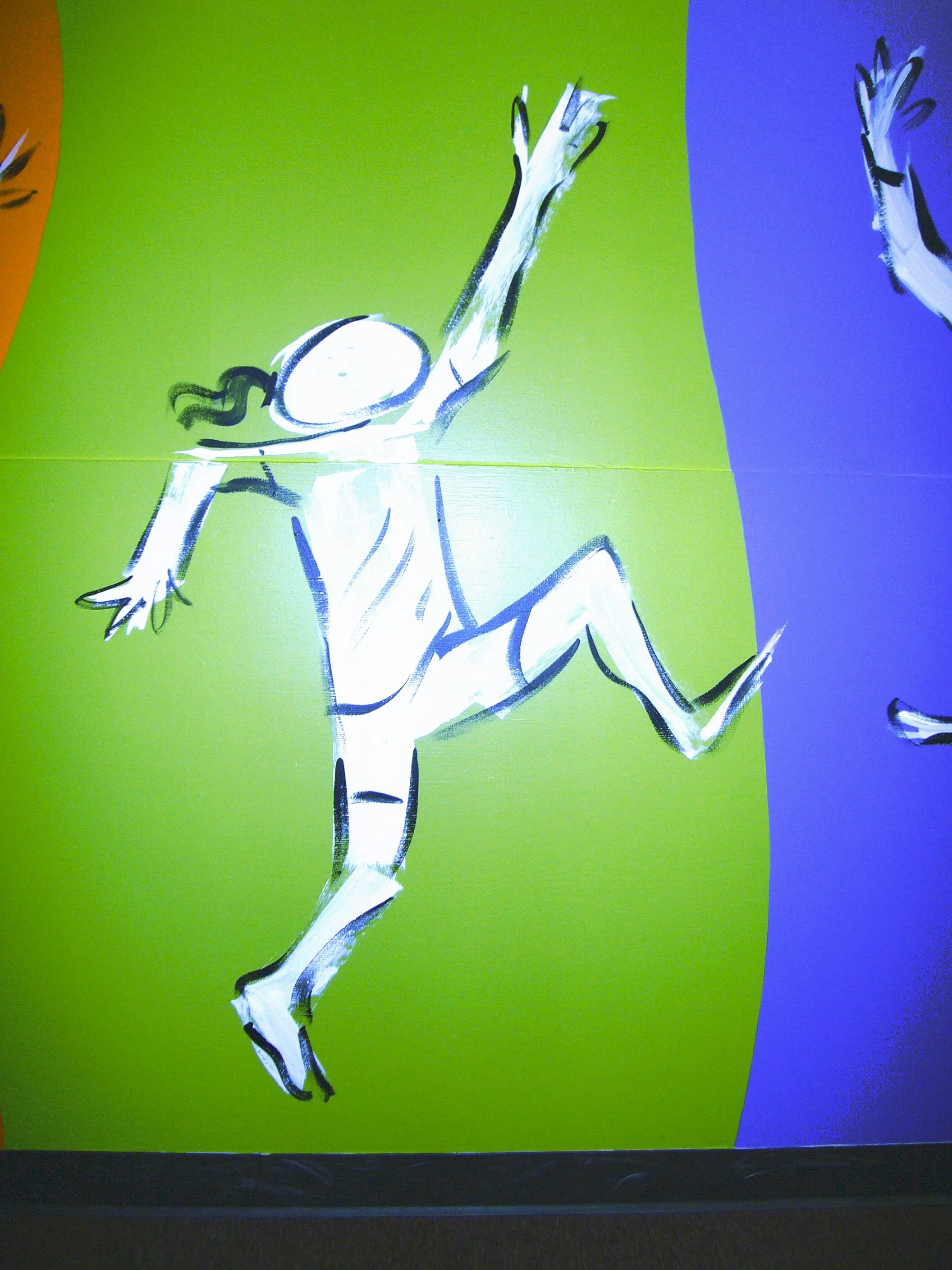 These murals were painted in a church basement, which was also used by a daycare during the week. The bright, rich colors transformed a drab area into a bright, inviting space.